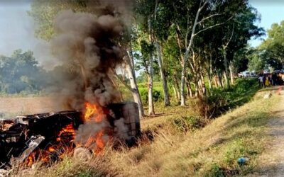 दुर्घटना लगत्तै बसमा आगलागी, १२ जना घाइते