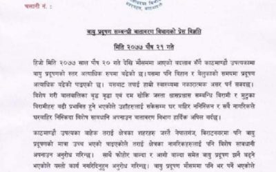 उपत्यकामा अत्याधिक वायुप्रदूषण भएपछि घरबाहिर ननिस्कन सरकारको आग्रह