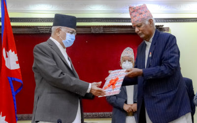 प्रधानमन्त्री ओलीलाई प्रज्ञा–प्रतिष्ठानको वार्षिक प्रतिवेदन हस्तान्तरण