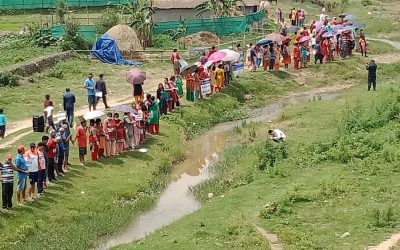 मानवसाङ्लो बनाएर गोदावरी खोला सफाईको अभियान आरम्भ