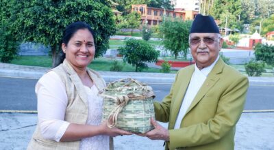 प्रधानमन्त्रीलाई चेपाङ समुदायबाट चिउरी उपहार