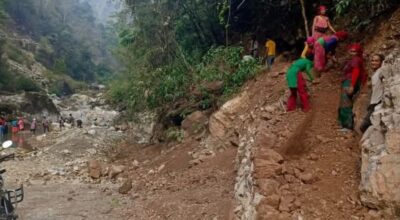 धसिएको कृष्णभिरको सडक मर्मत सुरु