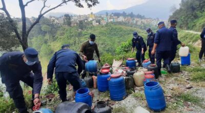 प्रहरीद्वारा अवैध घरेलु मदिरा नष्ट