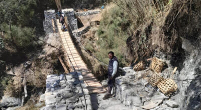 ढोरपाटन–गुर्जा पदमार्गमा काठे पुल निर्माण