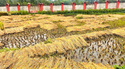 काटिसकेको धान भिजेपछि किसान चिन्तित