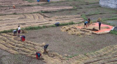 नुवाकोटका किसान बर्सातकै बीचमा धान भित्र्याउन व्यस्त