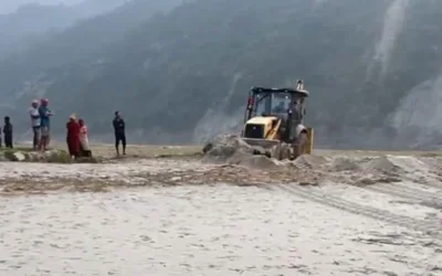 बाढीले थुपारेको गेगर हटाएर पुनः खेती गर्न योग्य जमिन बनाउन सहयोग गर्दै नगरपालिका