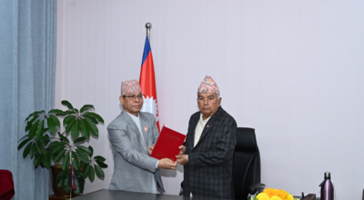 राष्ट्रपति पौडेलसमक्ष राष्ट्रिय प्राकृतिक स्रोत तथा वित्त आयोगको प्रतिवेदन पेस
