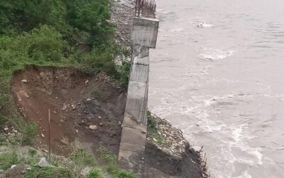 धाप्लाङघाटमा निर्माणाधीन पक्की पुलको खम्बा बाङ्गियो