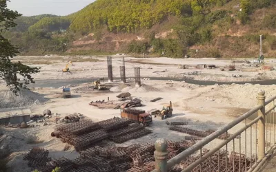 मादी नदीमा धमाधम पुल निर्माण हुँदै