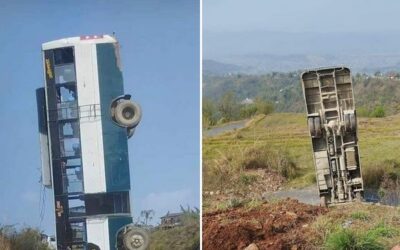 पोखरा लेखनाथमा बस दुर्घटना, चालक घाइते