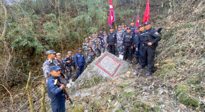 किमाथाङ्का नाकास्थित नेपाल–चीन सिमानामा रहेका सीमा स्तम्भको निरीक्षण