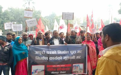 रौतहटका आवास पीडित दलितहरु आन्दोलित, अधुरो घरको निर्माण पूरा गर्न माग