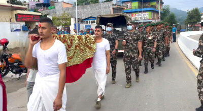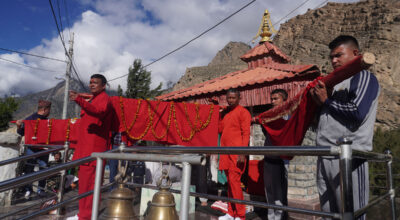 मुस्ताङमा बाजागाजासहित सुरक्षाकर्मीले भित्र्याए फूलपाती डोली