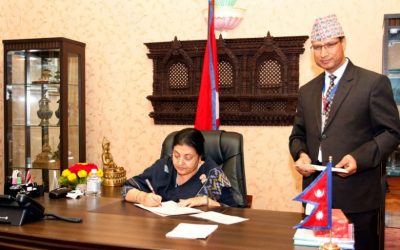 राष्ट्रपतिलार्इ भेट्न एकैसाथ प्रधानमन्त्रीसहित सत्तारुढ र प्रतिपक्षी नेता