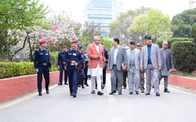 पेरिसडाँडाको भग्नावशेषमा उभिएर प्रचण्डको उद्घोषः ‘नयाँ र भव्य पार्टी कार्यालय बनाइनेछ’ (फोटोफिचर)