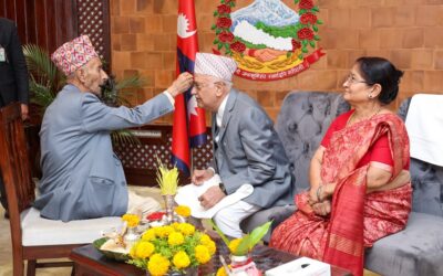प्रधानमन्त्री ओलीद्धारा बुवाको हातबाट टीका ग्रहण