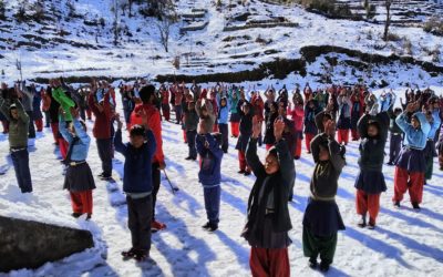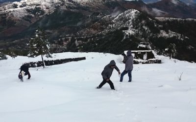 हिमपातको बीचमा राष्ट्रिय गान गाउँदै विद्यार्थी