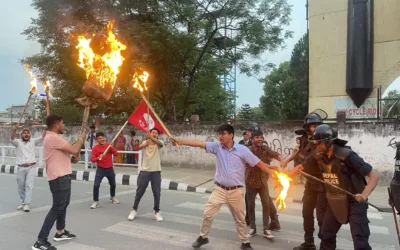 नेविसंघ र तरुण दलद्वारा गृहमन्त्री लामिछानेको पुत्ला दहन (फोटोफिचर)