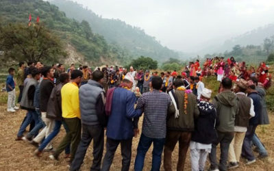 पोकली झरना परिसरमा लोकदोहोरी प्रस्तुत गर्दै कलाकार कृष्ण कँडेल