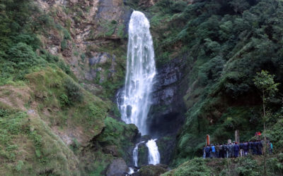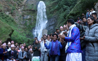 पोकली झरना अवलोकन गर्दै पर्यटक
