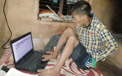 ल्याप्टपमा कविता देखाउँदै लेख्दै यामबहादुर