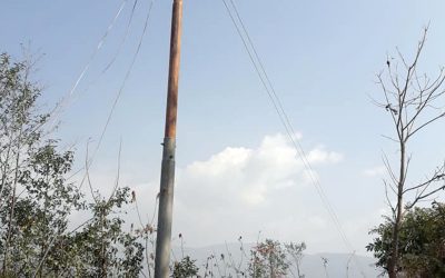 विद्युत विस्तारका लागि तारको काम गर्दै मजदुर