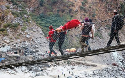 नरहरिनाथ गाउँपालिका: बिरामीलाई स्ट्रेचरमा उपचारका लागि मान्म लगिँदै