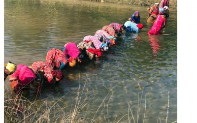 राप्ती नदीमा माछा मार्दै थारू महिला