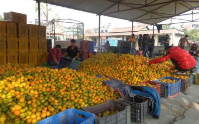 पोखराको पृथ्वीचोकमा बिक्रीका लागि राखिएका सुन्तला