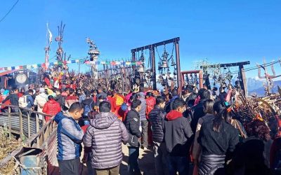 दोलखाको कालिन्चोक भगवती मन्दिरमा दर्शन गर्न पुगेका दर्शनार्थी ।