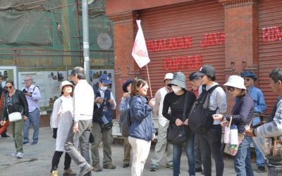 काठमाडौको बसन्तपुरमा विदेशी पर्यटकहरु ।