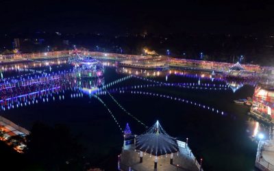 वीरगञ्जको छठीघाटलाई रंगबिरंगी बिजुली बत्तीले सिंगारिएको दृश्य ।