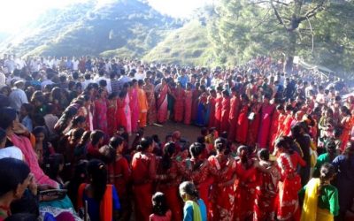 सुदूर पश्चिमेलीको मुख्य पर्व गौराको अवसरमा बैतडीको सिल्लेगडामा लागेको मेलामा देउडा खेल्दै स्थानीय महिला ।