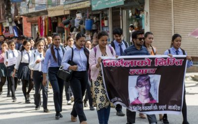 निर्मला पन्तको हत्यामा संलग्नलाई कारवाही गर्न माग गर्दै सोमबार दमौलीमा गरिएको र्यालीमा सहभागी विद्यार्थी