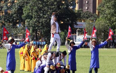 संविधान दिवसका अवसरमा टुँडिखेलमा नेपाली सेना तथा नेपाल प्रहारीले सांस्कृतिक प्रस्तुति प्रदर्शन गर्दै ।