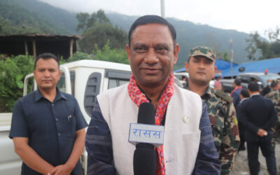 सुरुङमार्ग निर्माण कार्यको निरीक्षणपछि रासससँग कुरा गर्दै मन्त्री महतो