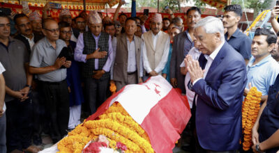 नेका पूर्वसांसद शास्त्री पौडेलको पार्थिव शरीरमा माल्यार्पण