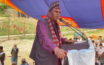 गोरखामा पार्टीको जनसभामा बोल्दै अध्यक्ष उपेन्द्र यादव