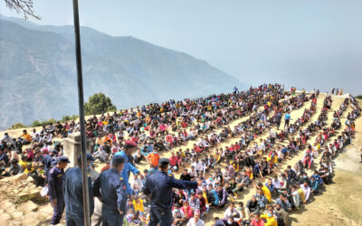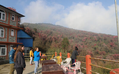 घोडेपानीमा लालीगुराँसको जंगल अवलोकन गर्दै पर्यटक