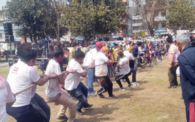 होलीको रमाइलोः डोरी तान्ने खेल खेल्दै तनहुँका युवा