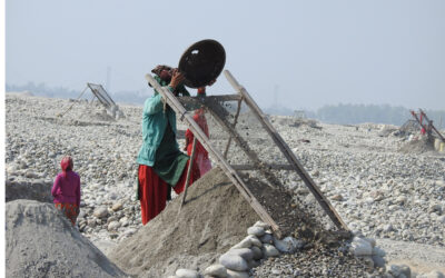 महाकालीमा गिट्टी र बालुवा छान्दै महिला (फोटोफिचर)