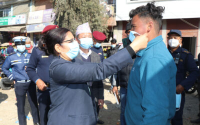 विना मास्क हिँड्नेलाई मास्क लगाइदिदैँ प्रमुख जिल्ला अधिकारी नेतृत्वको टोली (फोटोफिचर)