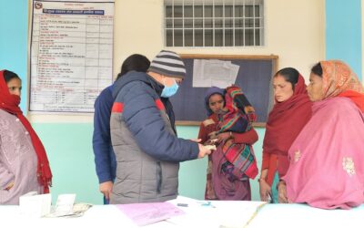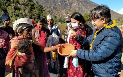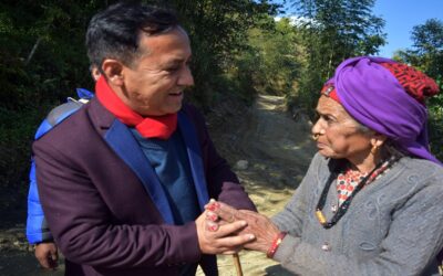 काँग्रेस महामन्त्री शर्मा वृद्ध महिलासँग भलाकुसारी गर्दै