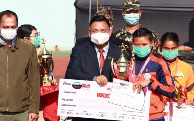 उपराष्ट्रपति पुन ‘ह्वील चेयर हाफ म्याराथन’ विजेताहरुलाई पुरस्कार वितरण गर्दै