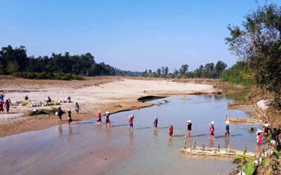 तटबन्ध निर्माणका लागि श्रमदान गर्दैै स्थानीयवासी