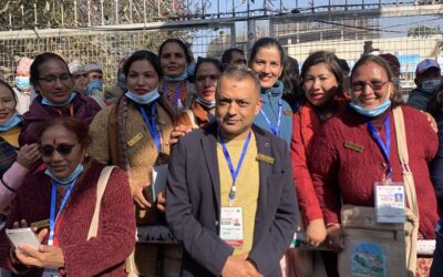 काँग्रेस १४ औँ महाधिवेशन: मतदातासँग तस्वीर खिचाउँदै महामन्त्रीका उम्मेदवार थापा