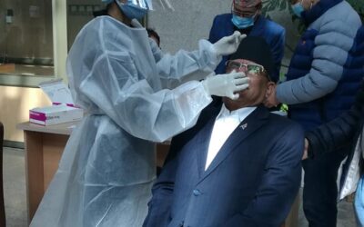 एन्टिजेन परीक्षण गराउँदै अध्यक्ष नेपाल