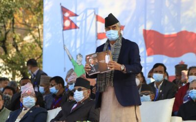 अधिवेशन कार्यक्रममा पुस्तक विमोचन गर्दै देउवा