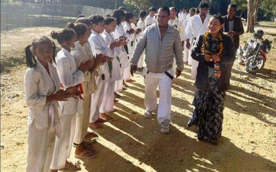 पूर्वमन्त्री मगरलाई स्वागत गर्दै खेलाडी